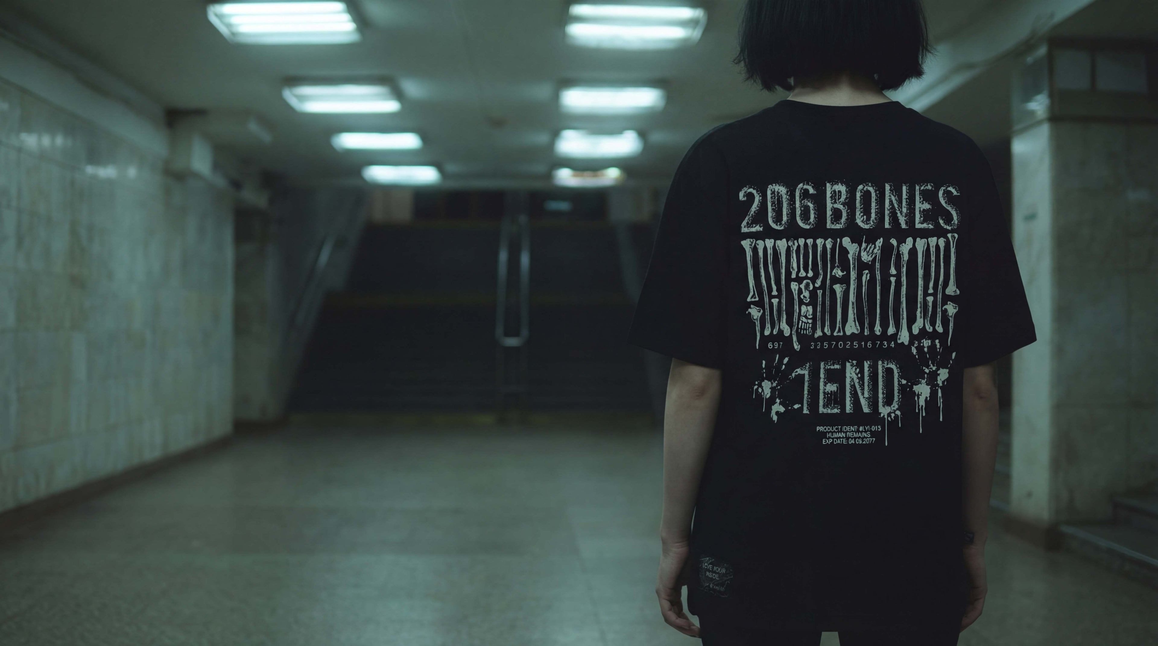 Czarna Koszulka Oversize z Nadrukiem „206 BONES 1 END”