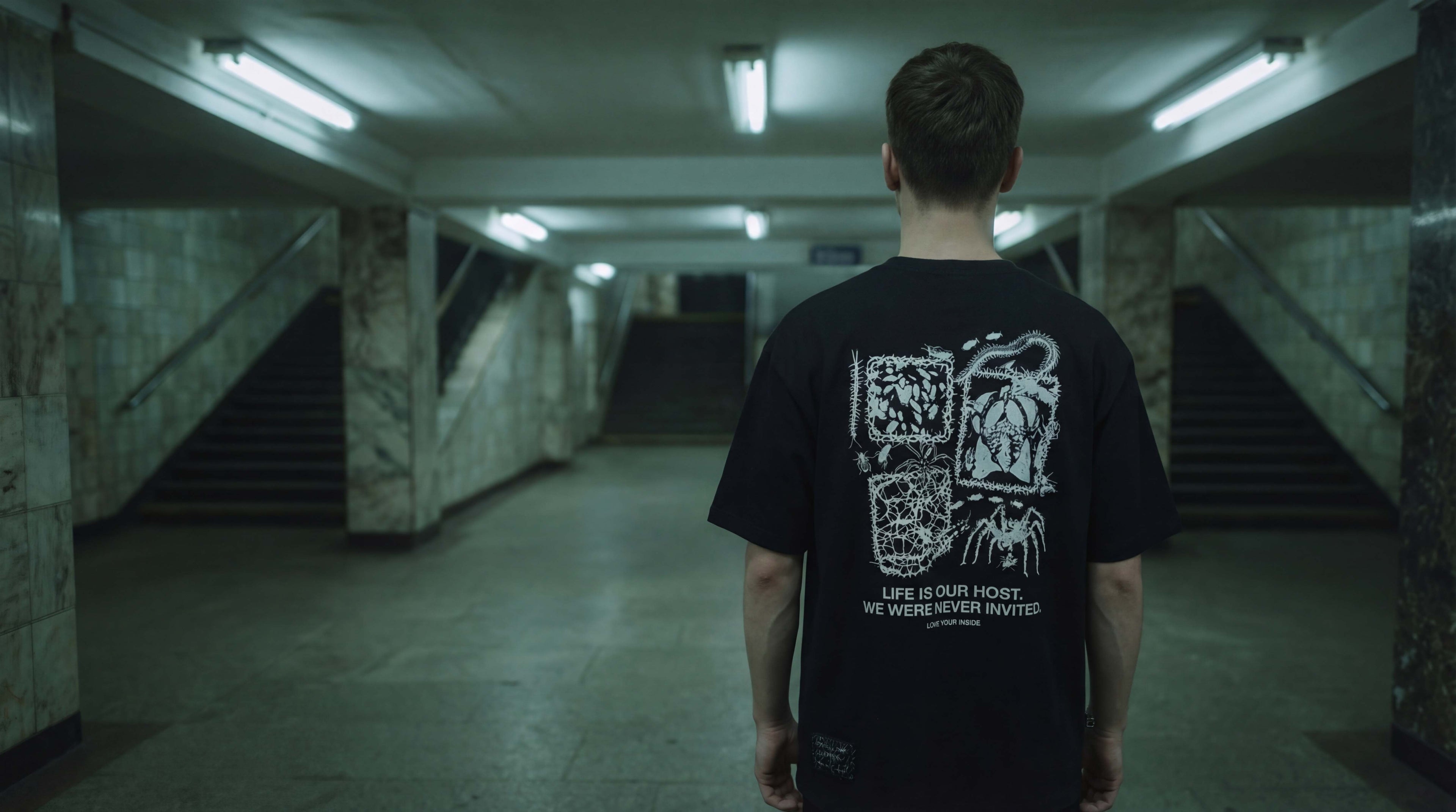 Czarna Koszulka Oversize z Nadrukiem LIFE IS OUR HOST